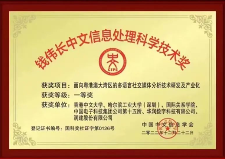 2023年3月24日-25日,中国中文信息学会2022学术年会暨理事会在北京隆重举行,会上颁发了“钱伟长中文信息处理科学技术奖”和“青年创新奖”。网络空间安全学院李斌阳教授、李岩副教授参与的“面向粤港澳大湾区的多语言社交媒体分析技术研发及产业化”项目获得钱伟长中文信息处理科学技术一等奖,李斌阳教授获得2022年钱伟长中文信息处理青年创新奖。