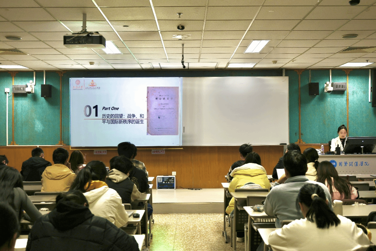 以对历史的回顾为基础,然后姚航老师从程序性、法理性和历史性等多个维度出发,剖析了在美苏冷战、权力激烈对抗与国际局势复杂的时代大背景下,中国重返联合国背后的法理与权力结构的博弈。姚航老师带领同学们逐步深入思考,指出了这一外交胜利是历史进步性的必然表现,也体现了世界爱好进步与和平的国家对新中国外交政策的认同。中国恢复在联合国的合法席位增强了联合国的普遍性和权威性,是标志着国际秩序转型的重要开端,为研究当代全球治理体系变革提供了重要依据。