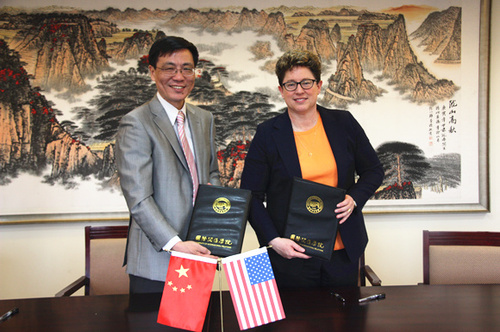 美国玛瑞埃塔学院代表团来访我校 4月8日至9日,美国玛瑞埃塔学院(以下简称“玛校”)校长约瑟夫•布鲁诺博士、常务副校长兼教务长珍妮特•L•布兰德博士、副教务长马克▪米勒博士在该校易小熊博士和韩华老师的陪同下来访我校并与我校续签合作交流协议。...