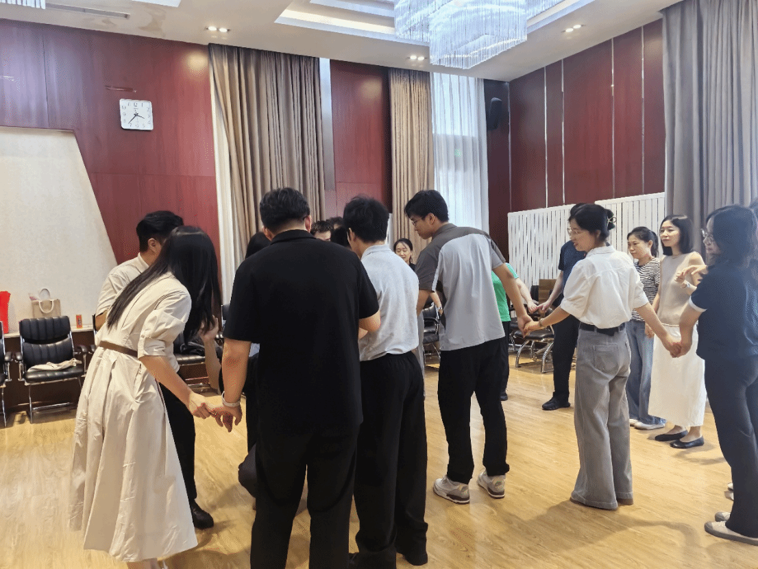 随后,在心理研究服务中心许娜老师的专业引导下,一系列精心设计的心理团体辅导活动有序展开:“热身破冰”打破了初识的拘谨,“连环表达”加深了彼此的了解;随后,“大风吹”游戏建立了情感的联结,“成功分享”活动激发了职业的自信;在富有挑战性的团队协作任务中,19名新入职老师合力攻关,熔炼了团队精神与合作意识;最后,在经典的‘击鼓传花’环节中,接受考验的新教职工们早已对同事们的信息如数家珍,充分展现了活动的良好效果。活动内容形式新颖,全程节奏张弛有度,现场气氛热烈、欢笑不断,大家在深度参与和体验中迅速拉近了彼此的距离。