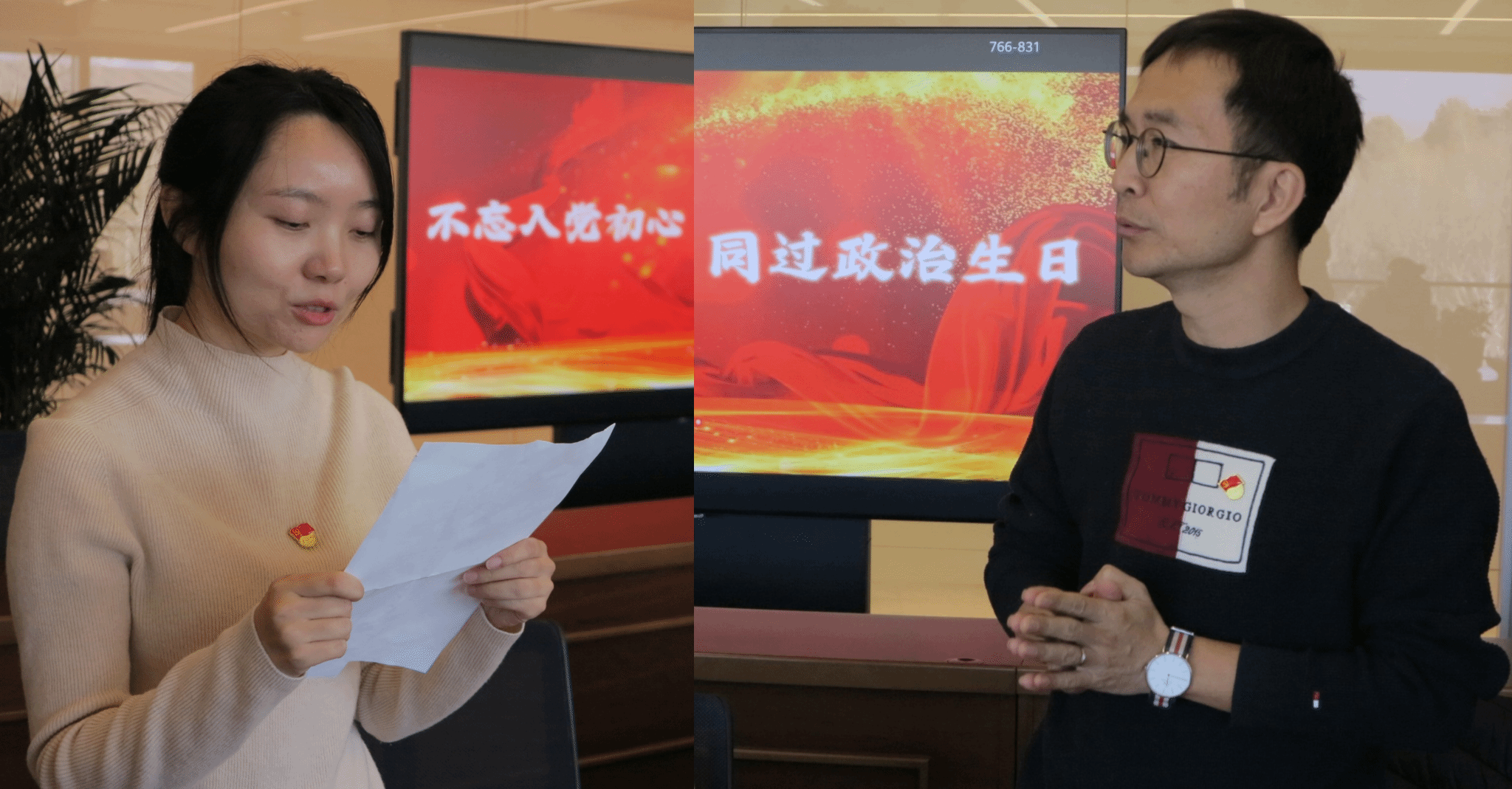 在华为北京研究所会议室,三个支部联合为第三、四季度入党的6位党员同志举行了“政治生日”庆祝仪式。仪式由国际交流合作处直属党支部书记阴医文同志主持。